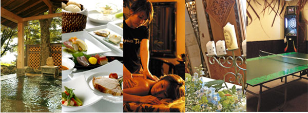| 2003年12月、東京から電車や車で2〜3時間程の伊豆半島、伊豆高原駅より桜並木を歩いて10分程の海が見える別荘地内の高台にバリ島のリゾートホテルをイメージした温泉リゾート、ホテルアンダティバリゾート伊豆高原がオープンいたしました。 温暖な伊豆高原に温泉大浴場や無料貸切露天風呂を備え、バリ島より直輸入した家具、調度品、おみやげ(バリ雑貨店有り)等を館内いたる所に配し、 和とオリエンタルを上手に 合作した癒しの温泉リゾートホテルです。 |