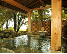 | 原生林に佇む貸切露天風呂。(他2種の貸切風呂 有り。1泊に付お好きな貸切風呂を1回無料) |